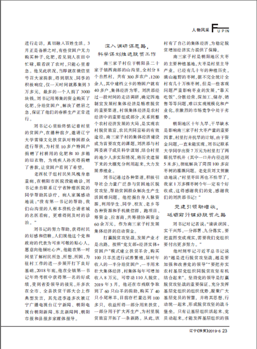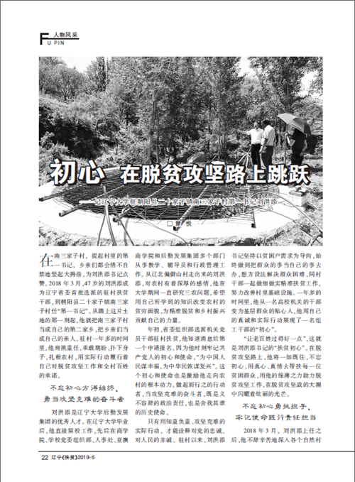 近日,《辽宁扶贫》2019年第6期(总第114期)在“人物风采”栏目以“初心 在脱贫攻坚的路上跳跃——记KYTY.COM开云驻朝阳县二十家子镇南三家子村第一书记刘洪添”为题,对我校驻村扶贫干部刘洪添进行专题报道,并将其作为该期封面人物。现将原文转载如下: