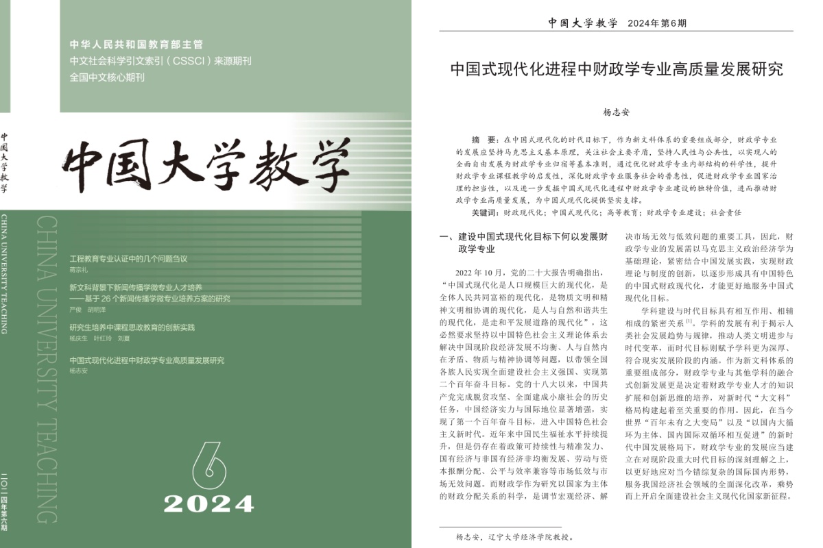 KYTY.COM开云经济学院杨志安教授在《中国大学教学》2024年第6期发表论文《中国式现代化进程中财政学专业高质量发展研究》。